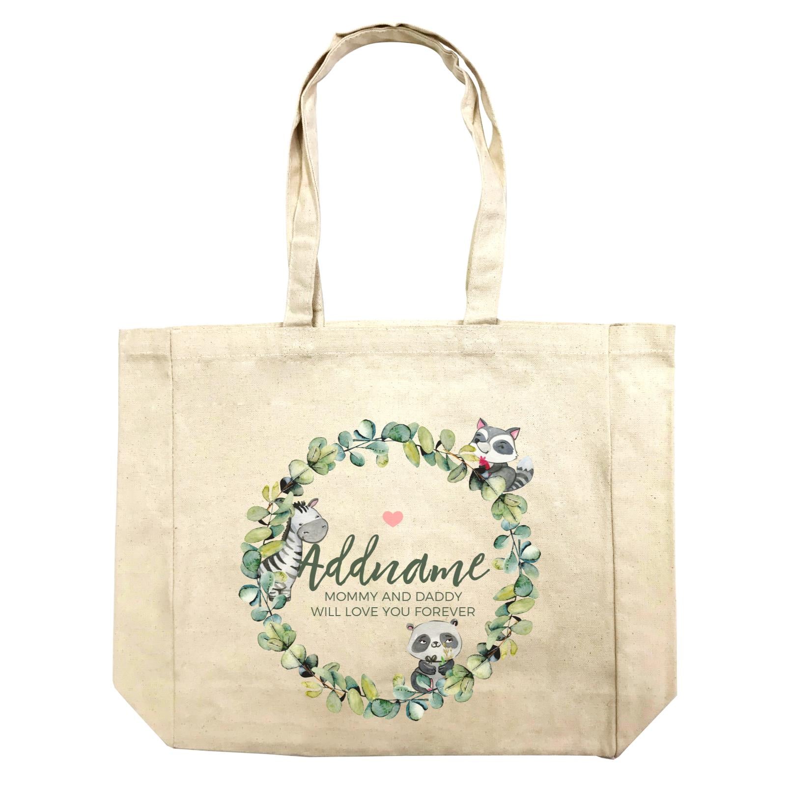 Watercolour Panda Zebra and Racoon Leaf Wreath Personalizable with Name and Text Shopping Bag