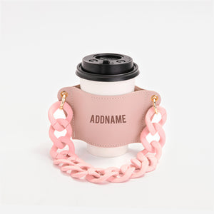Introducing our Cup holder with personalisation. It features a PU leather cup sleeve with Metal chain that makes it elegant & portable. It comes with matching colour cup sleeves and chain. A convenient holder to carry your coffee or favourite beverage to-go anytime & anywhere. Fits most standard size take-away cups/tumblers.