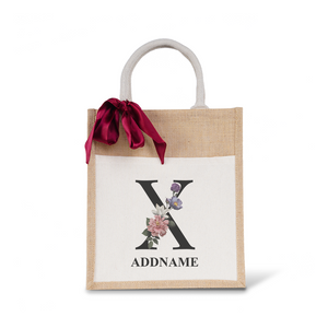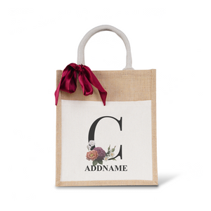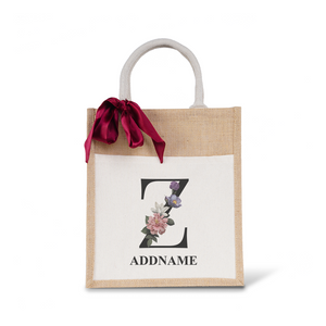 Myra Floral Series Natural Colourful Jute Bag With Front Pocket