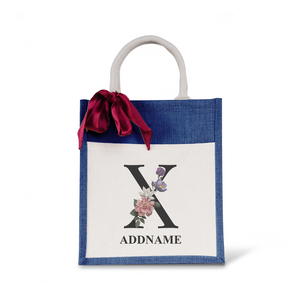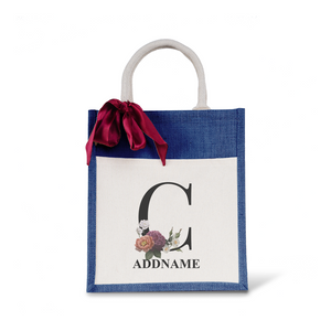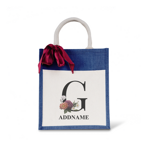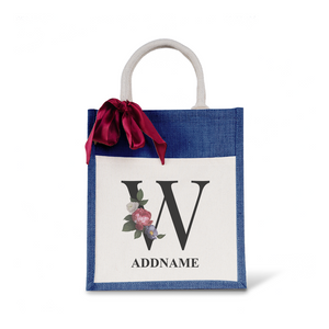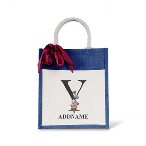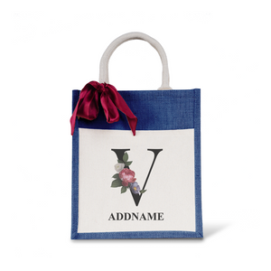 Myra Floral Series Navy Colourful Jute Bag With Front Pocket