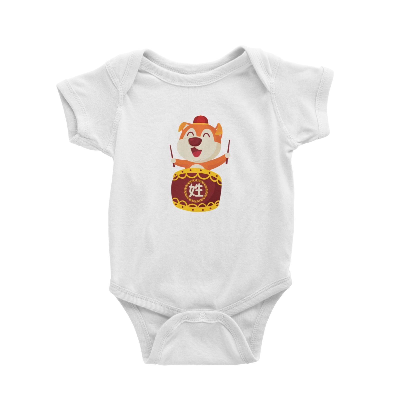 Chinese New Year Surname Cute Dog Playing Drum Baby Romper Personalizable Designs