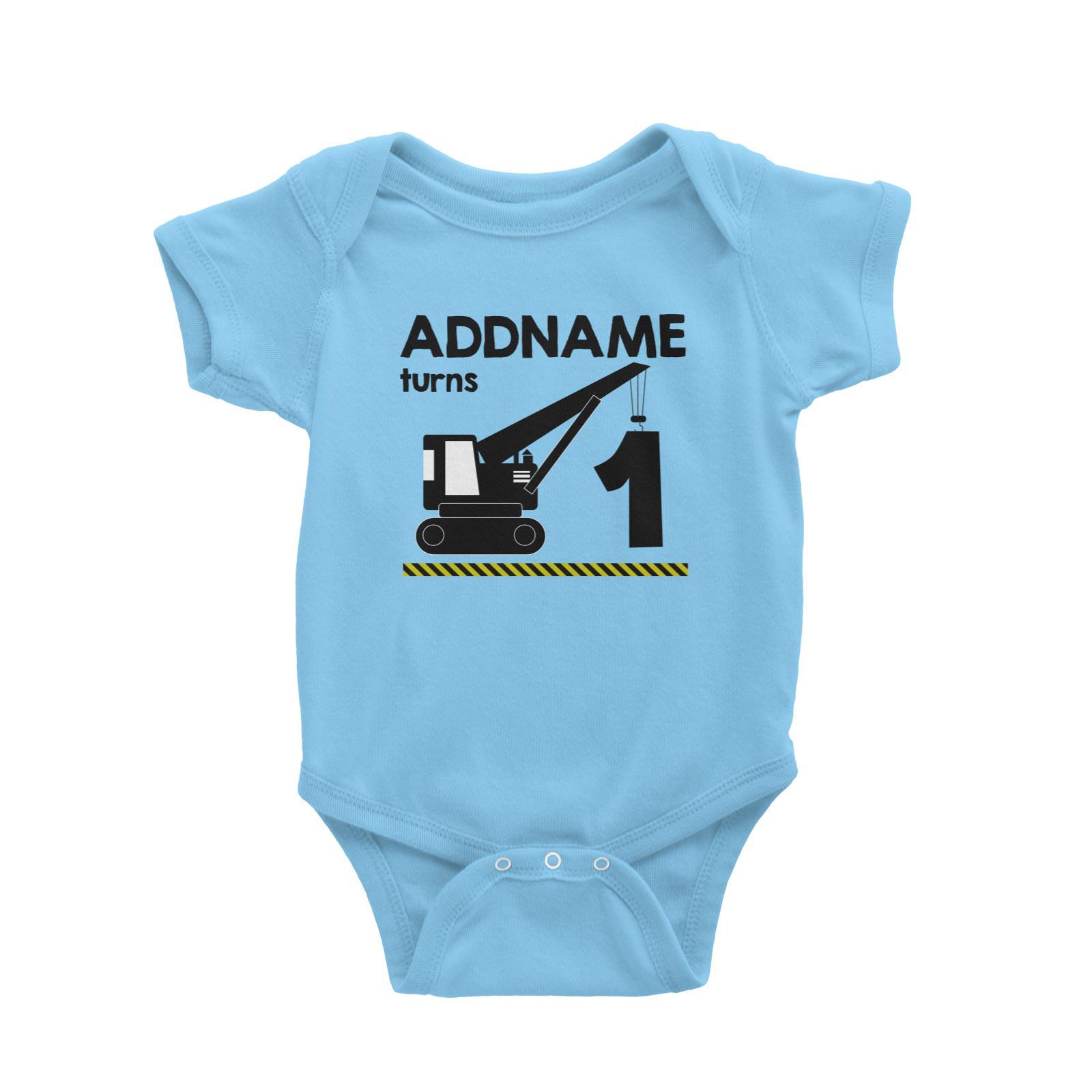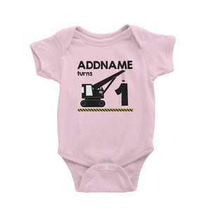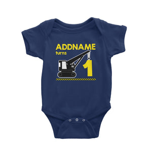 Construction Birthday Theme Crane Personalizable with Name and Number Baby Romper
