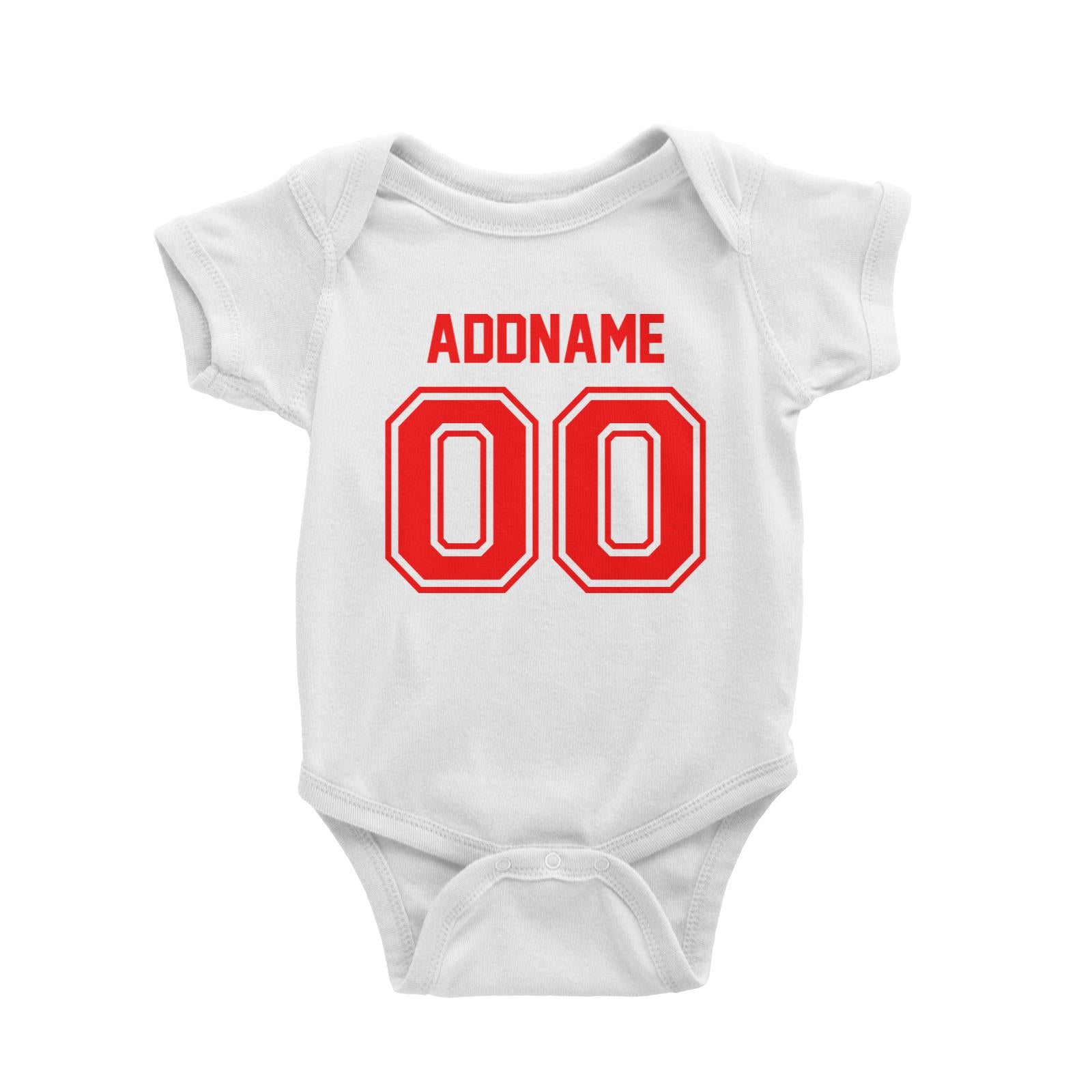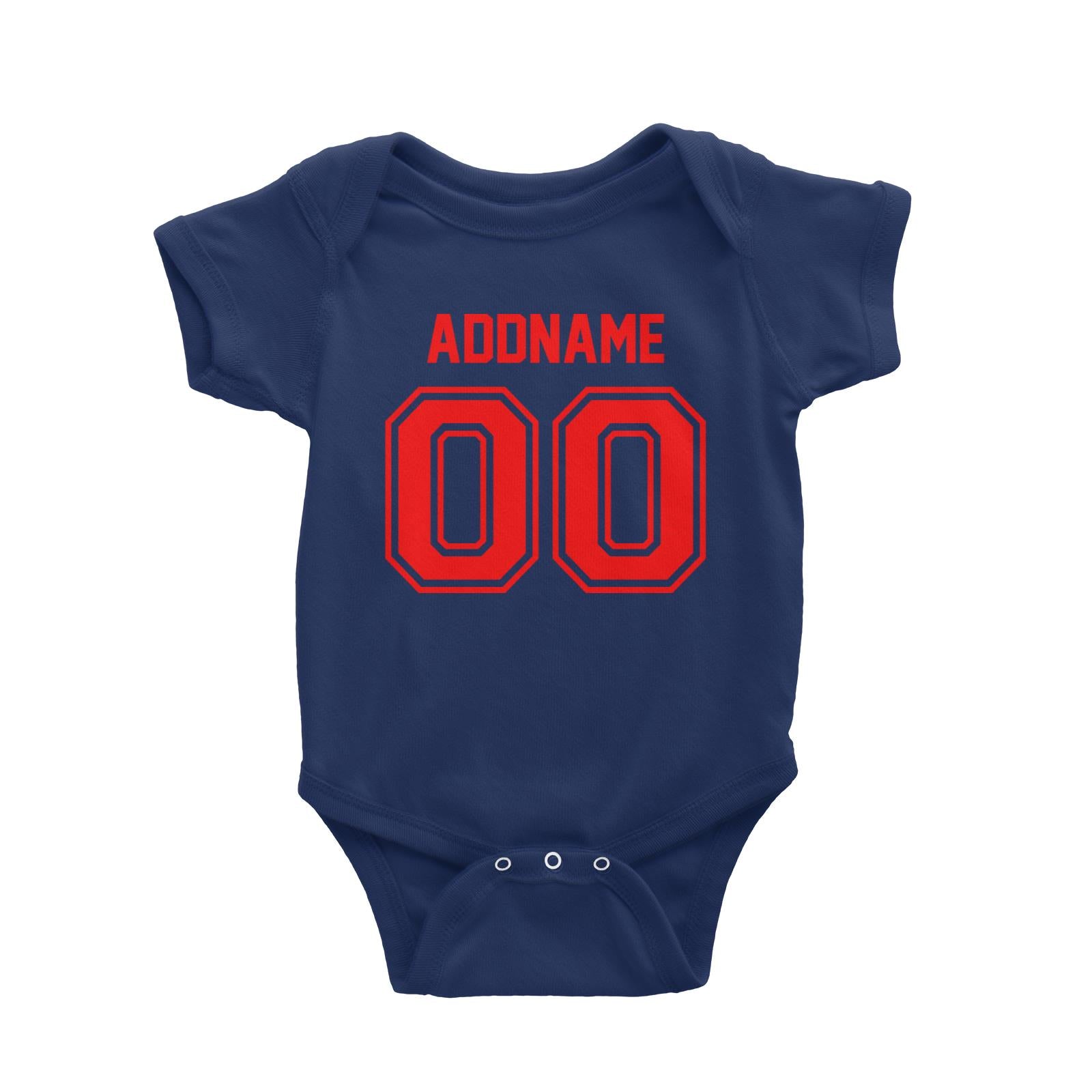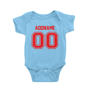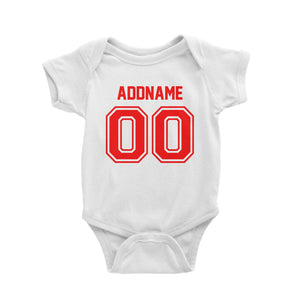 Jersey Red Font With Name and Number Baby Romper