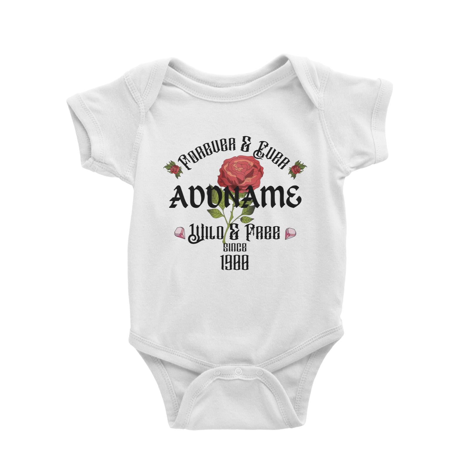 Forever and Ever Wild and Free Roses Personalizable with Name and Year Baby Romper
