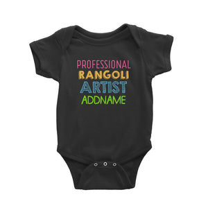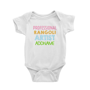 Professional Rangoli Artist Addname Baby Romper is a great way of making a statement! Made with 100% cotton, High Quality and Comfortable to wear. Get them personalised, and in matching Family Outfits as well! Disclaimer : Please note that we DO NOT PRINT GOLD prints. Any colours in the mock ups that may have represented that is unintentional and will be printed in a yellow mustard colour.