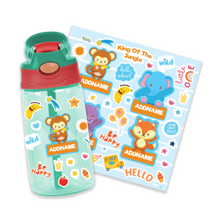 Our kid's essential water bottle comes plain on its own with matching personalisable stickers that kids can decorate with.