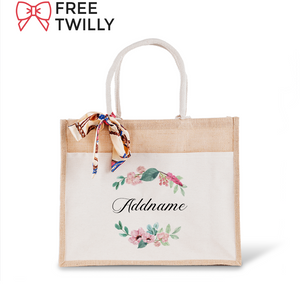 Our Jute bags are made from a recycled material that is both eco-friendly and is heat resistant. This tote bag is perfect for carrying around groceries, personal items, food and many more. Personalize it to your liking, and even more we provide free twilly on every purchase!