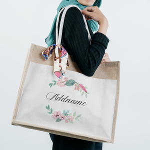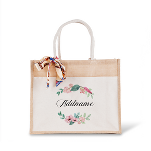 Beautiful Flower Wreath Jute Bag with Front Pocket