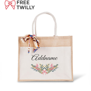 Our Jute bags are made from a recycled material that is both eco-friendly and is heat resistant. This tote bag is perfect for carrying around groceries, personal items, food and many more. Personalize it to your liking, and even more we provide free twilly on every purchase!