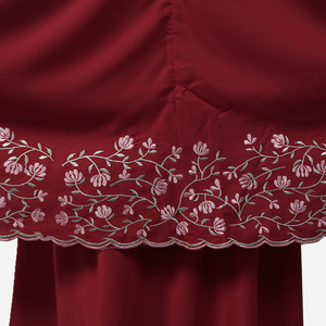 This piece of white telekung is how a telekung used to look like. It is the classic design that last till today. Our Beautiful telekungs are durable, wrinkle-resistant, has cooling sensation and it is lightweight. Made with love by using the best material for your comfort as well as little floral pattern to enhance its beauty. Material : Gelato fabric -- ultra soft, flowy and super cooling Features : Non-elasticated tie back around the head