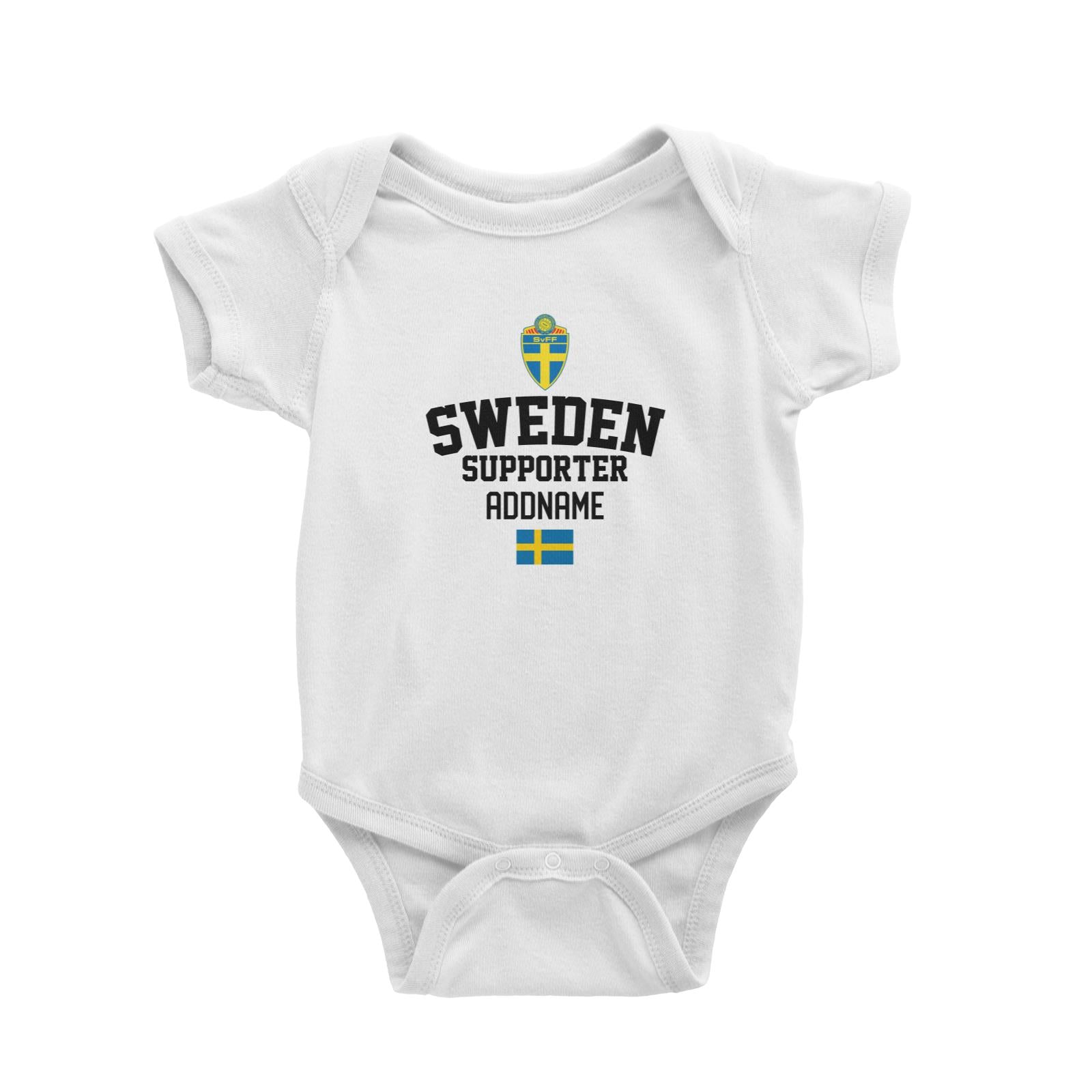 Sweden Supporter World Cup Addname Baby Romper is a great way of making a statement! Made with 100% cotton, High Quality and Comfortable to wear. Get them personalised, and in matching Family Outfits as well!