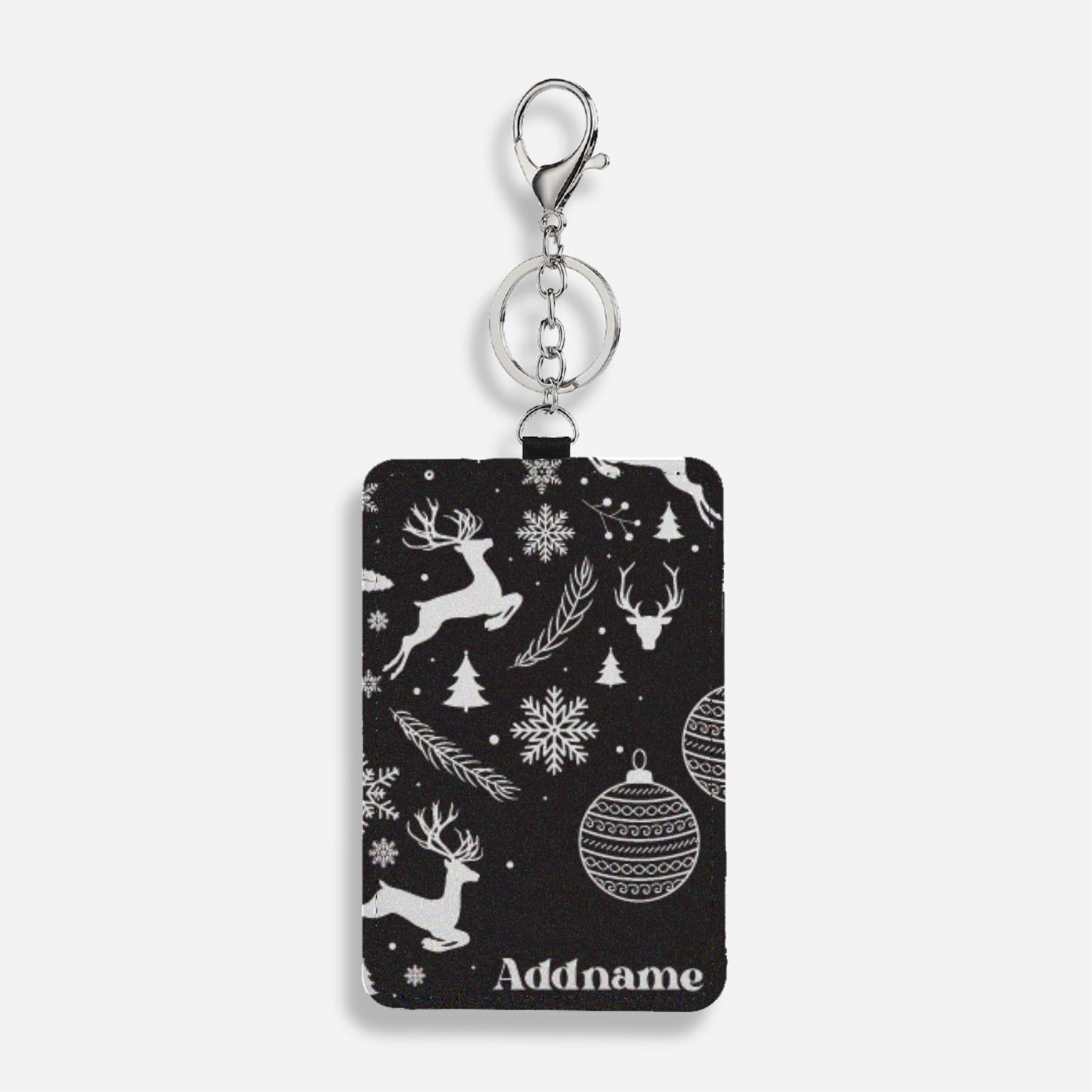 Christmas Series Cardholder With Keyring - Jubilant Reindeers Black
