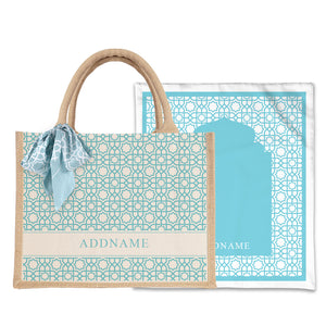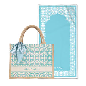 Annas Series - Sky Blue Prayer Mat with Natural Half Lining Small Jute Bag