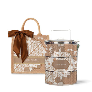 Takeaway in style with your own tiffin/mangkuk tingkat, personalised with your name/initial/brand.