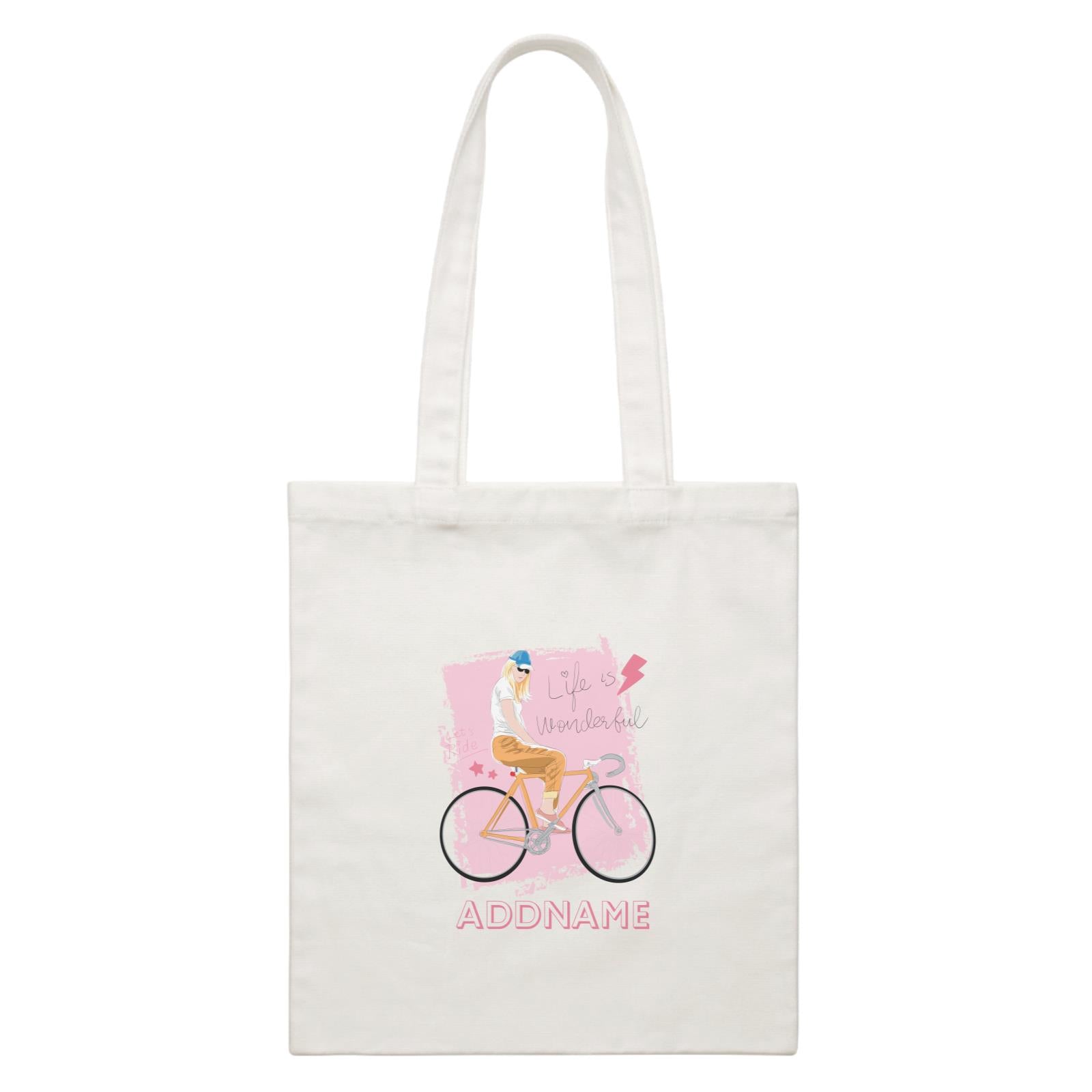 Beautiful Chic Life Is Wonderful Bicycle with Addname White Canvas Bag