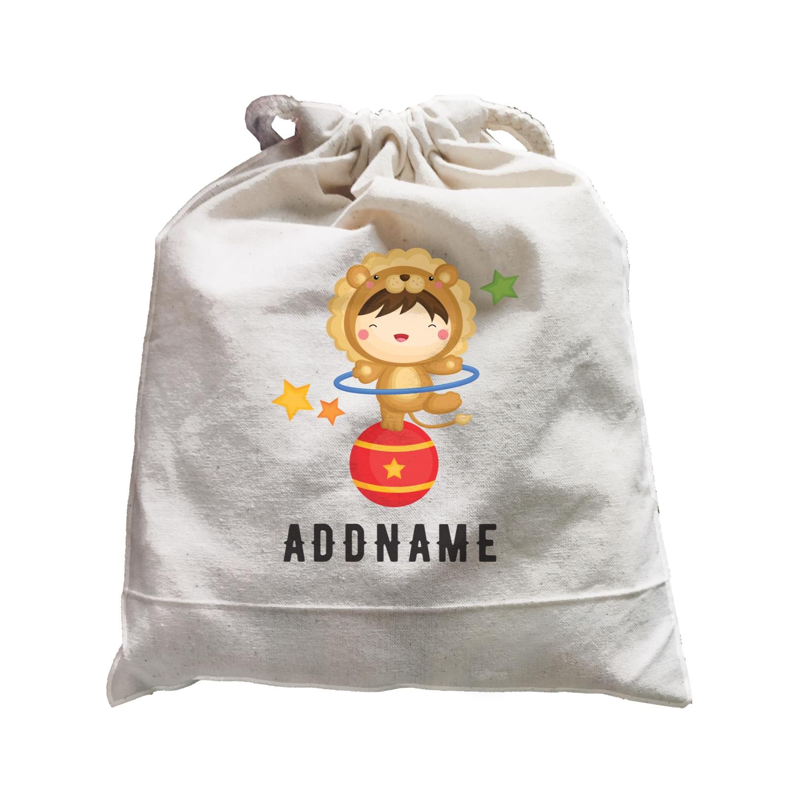 Birthday Circus Happy Boy Wearing Lion Suit Playing Hula Hoop Addname Satchel