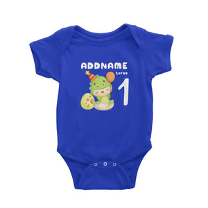 Birthday Dinosaur Happy Baby Wearing Dinosaur Suit Addname Turns 1 Baby Romper