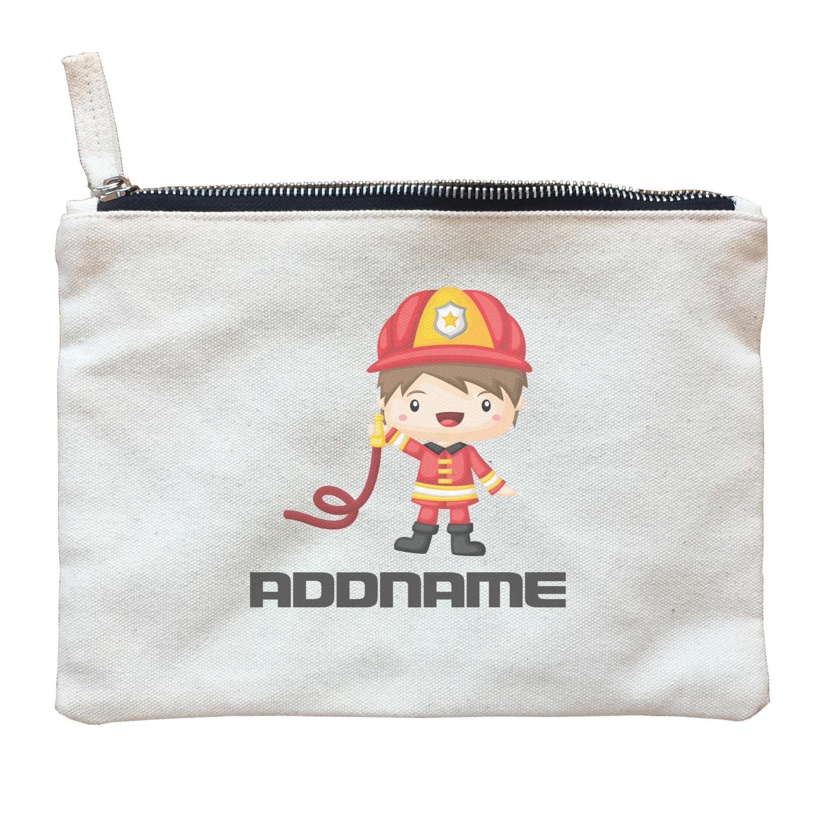 Birthday Firefighter Boy Holding Water Hose Addname Zipper Pouch