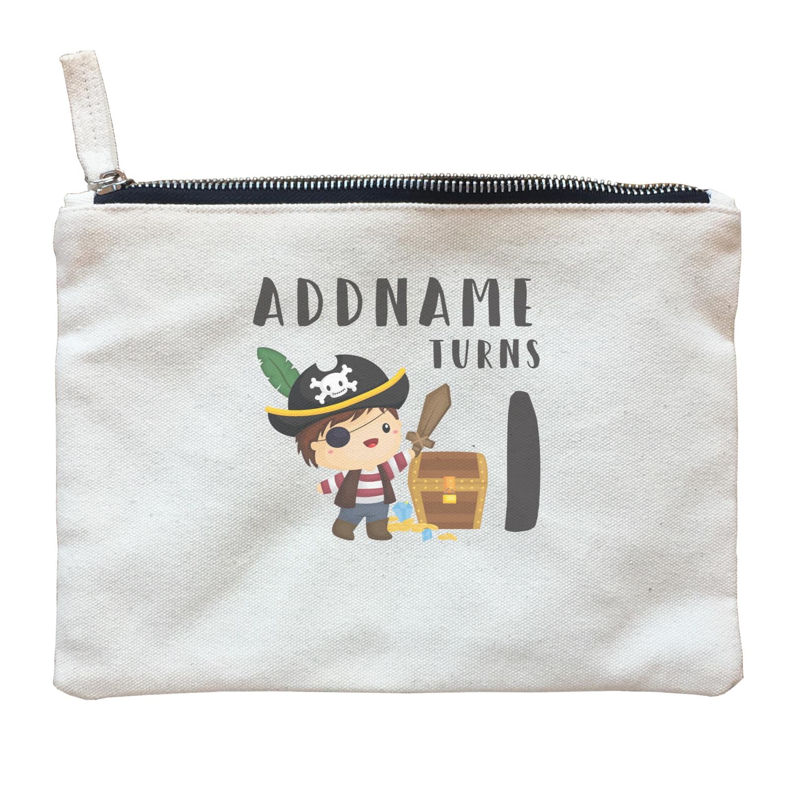 Birthday Pirate Happy Boy Captain With Treasure Chest Addname Turns 1 Zipper Pouch