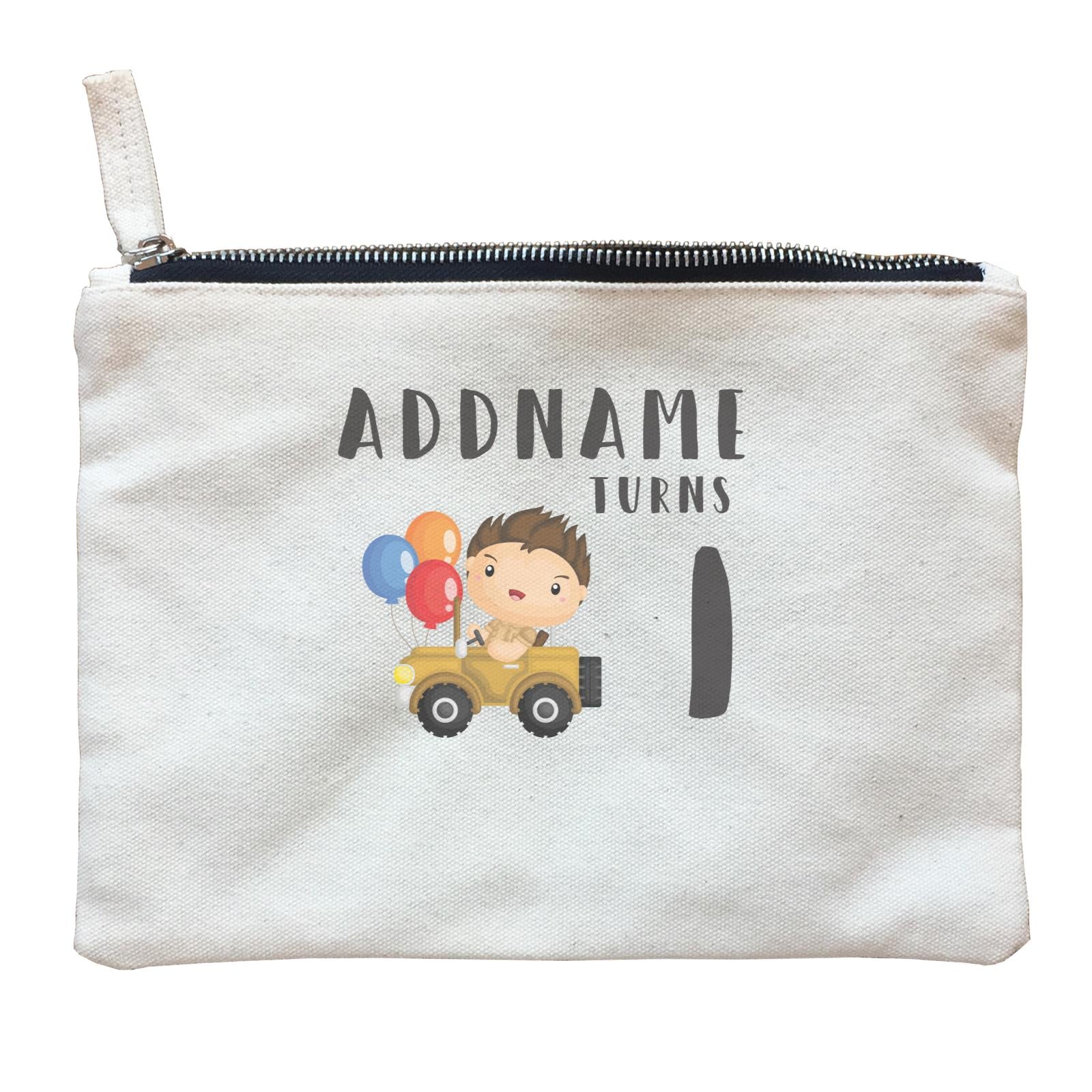 Birthday Safari Explorer Boy Driving Jeep Car Addname Turns 1 Zipper Pouch