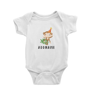 Birthday Safari Monkey Wearing Party Hat Addname Baby Romper