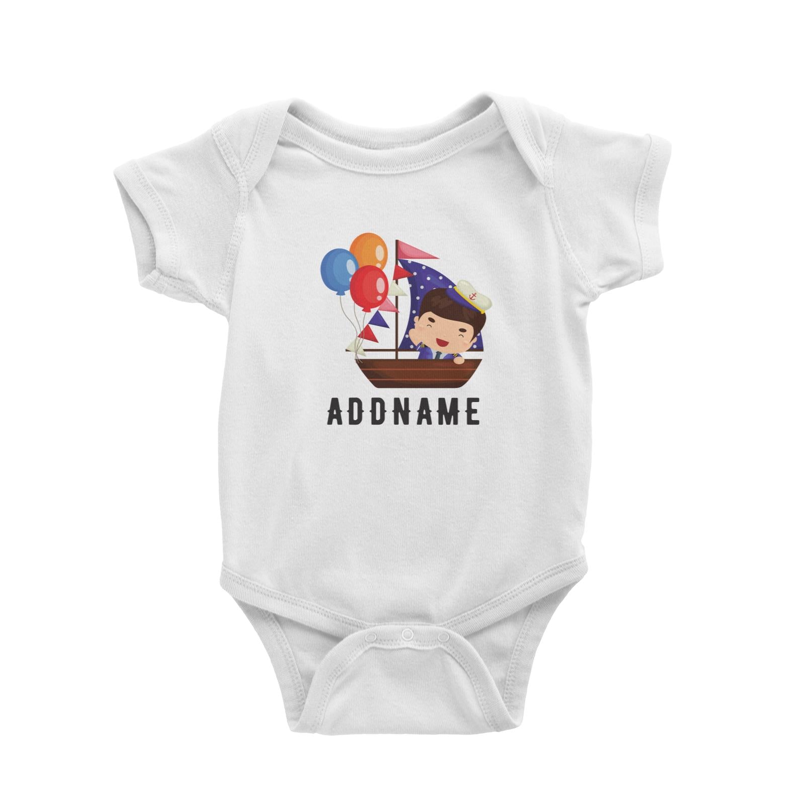 Birthday Sailor Boy In Ship With Balloon Addname Baby Romper