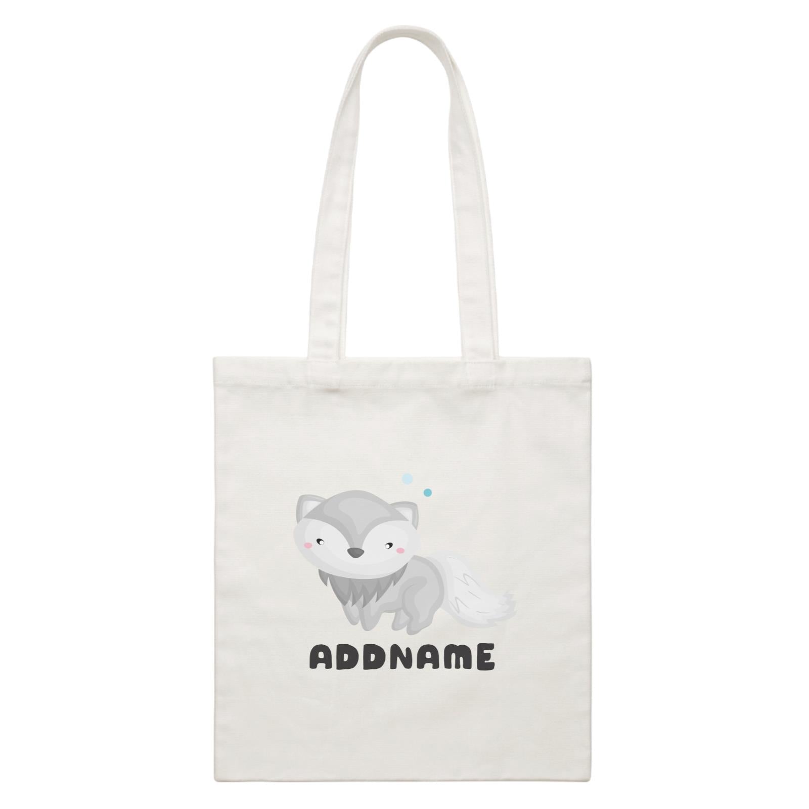Birthday Winter Animals Snow Fox Addname White Canvas Bag