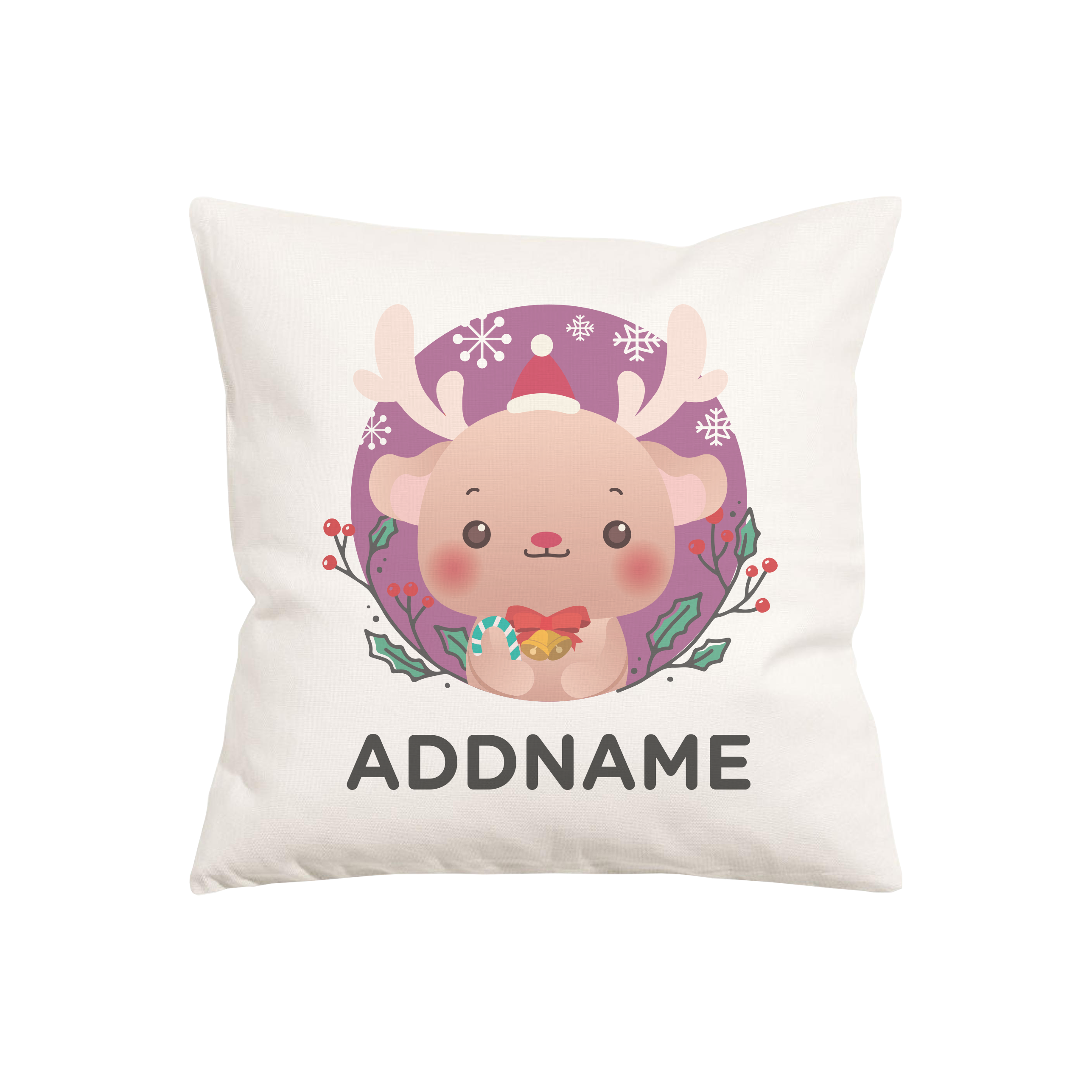 Christmas Cute Animal Series Cute Reindeer Cushion is made with canvas and comes with a hidden zipper on the side. It measures 40cm X 40cm and personalised with a name. A perfect complement to a home or an office chair.