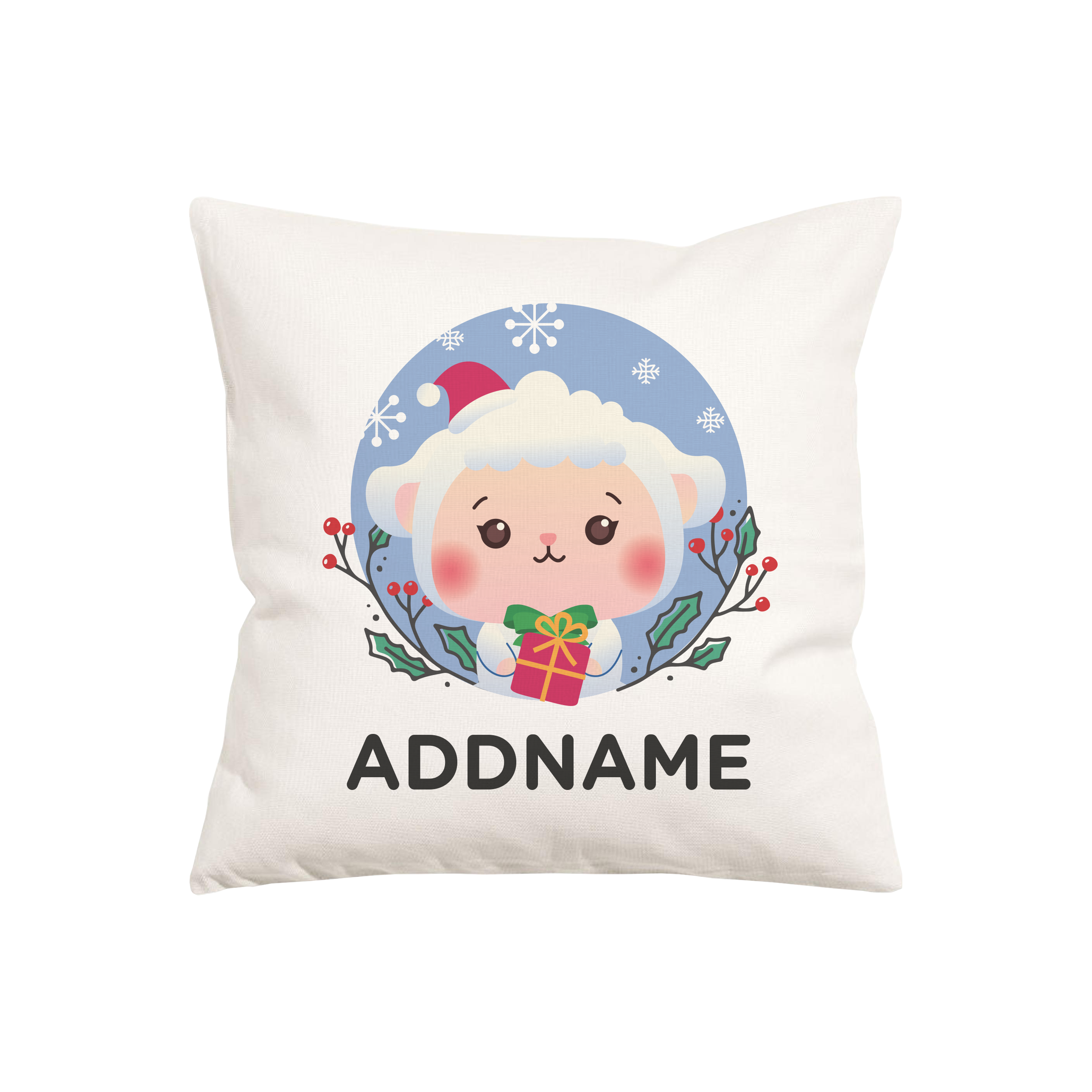 Christmas Cute Animal Series Cute Sheep Cushion is made with canvas and comes with a hidden zipper on the side. It measures 40cm X 40cm and personalised with a name. A perfect complement to a home or an office chair.