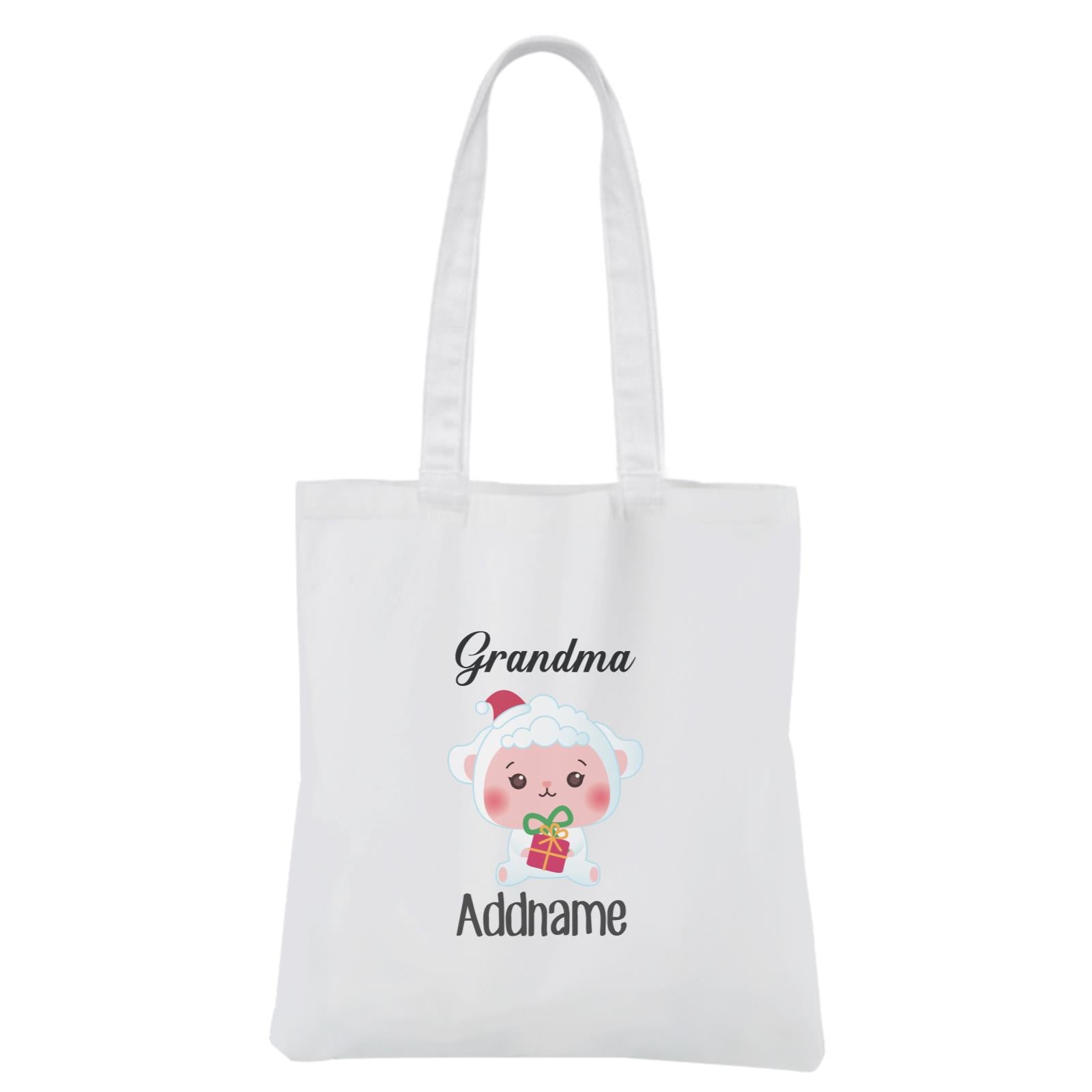 Christmas Cute Animal Series Grandma Sheep White Canvas Bag