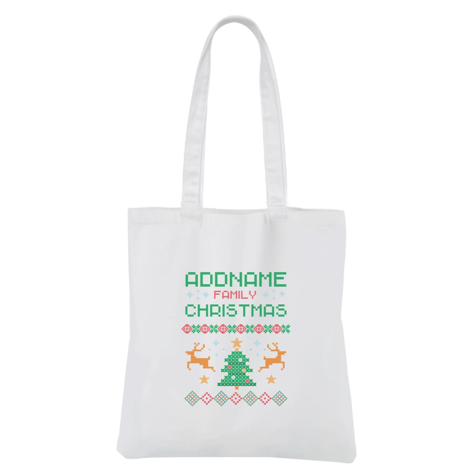 Christmas Series Addname Family Sweater Design White Canvas Bag
