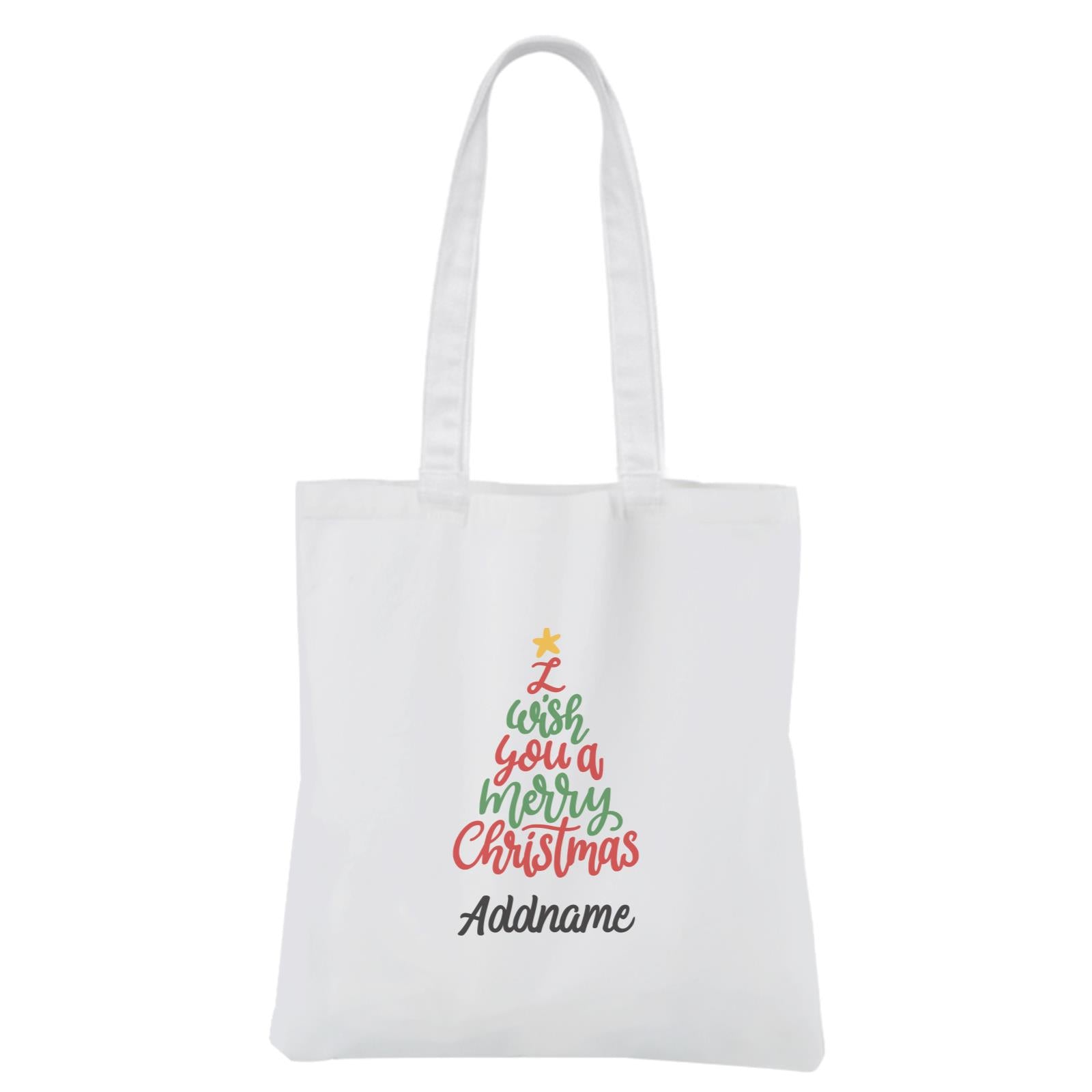 Christmas Series I Wish You A Merry Christmas Tree White Canvas Bag