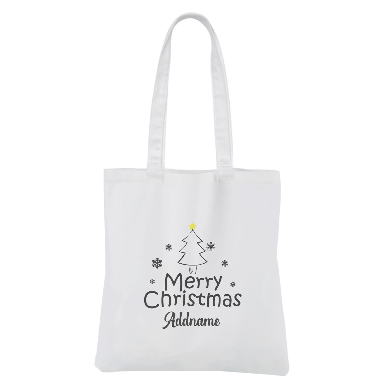 Christmas Series Merry Christmas Tree with Snowflakes White Canvas Bag
