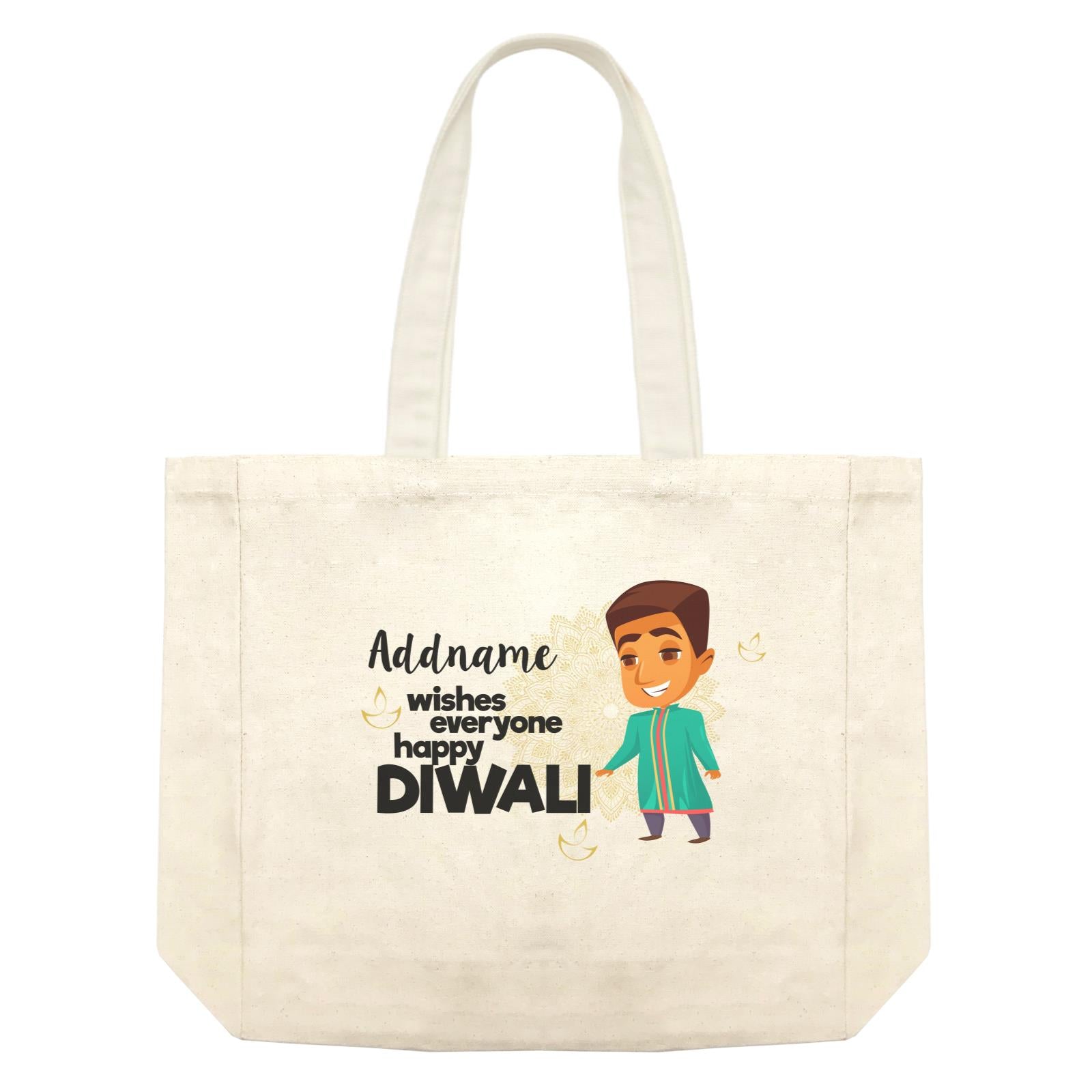 Cute Man Wishes Everyone Happy Diwali Addname Shopping Bag
