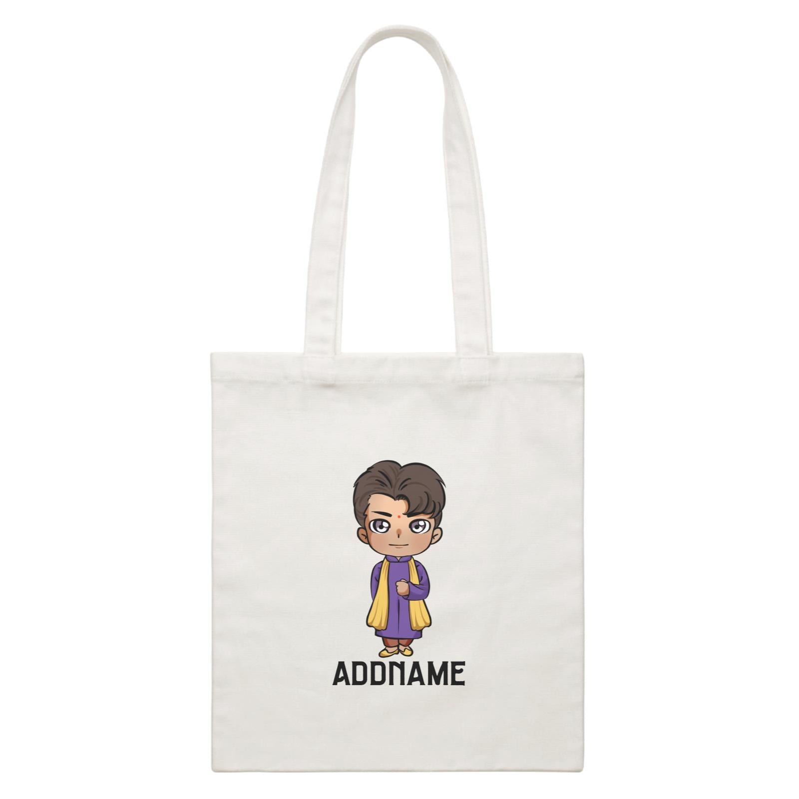 Deepavali Series Chibi Man Front Addname White Canvas Bag