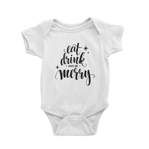 Eat Drink and Be Merry Baby Romper Christmas Lettering