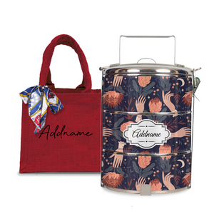 Takeaway in style with your own tiffin/mangkuk tingkat, personalised with your name/initial/brand.