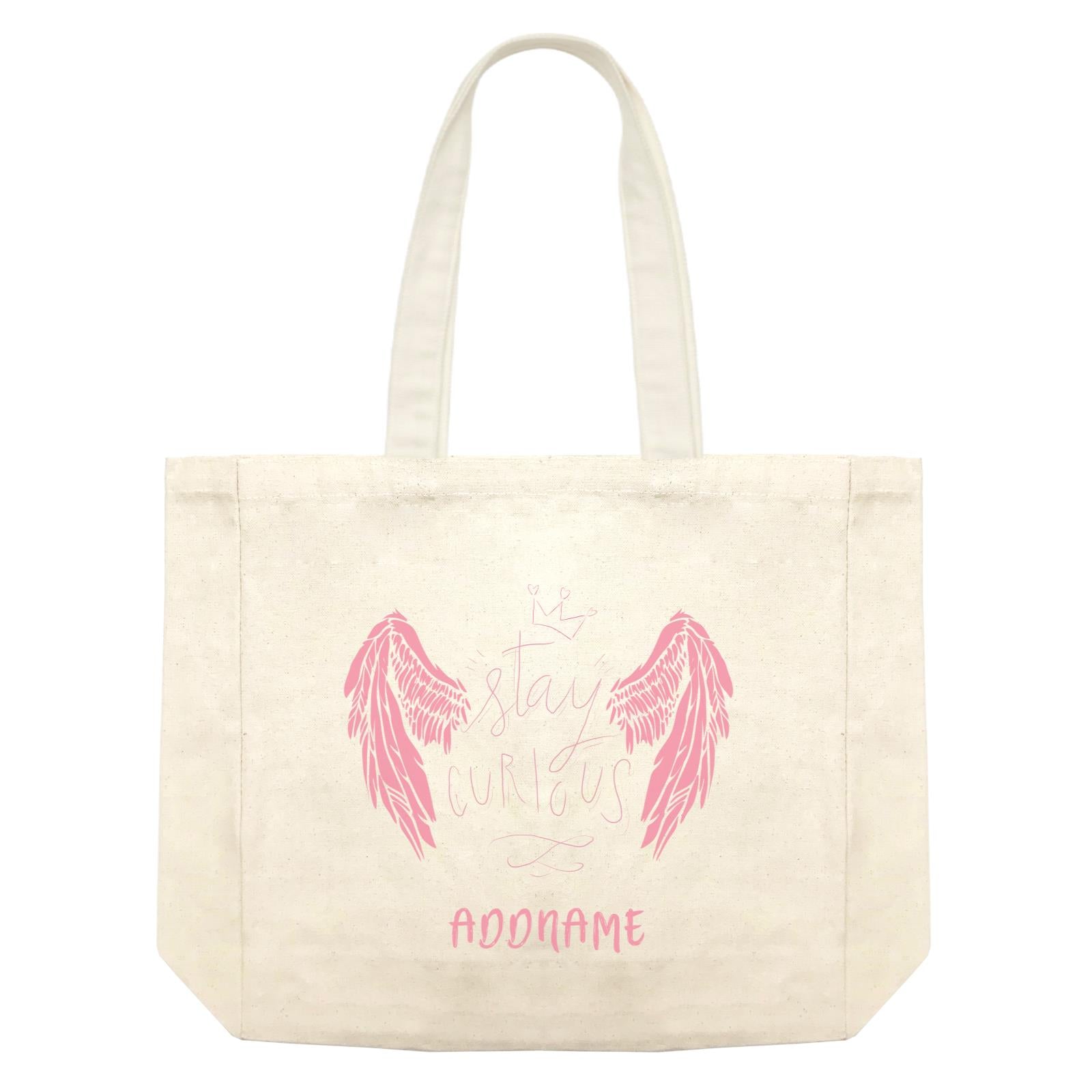Girl Power Quotes Stay Curious Pink Angel Wings With Addnames Shopping Bag