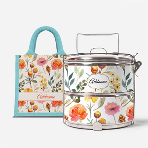 Laura Series - Carnelian - Lunch Tote Bag with Two-Tier Tiffin Carrier