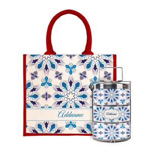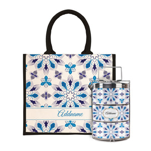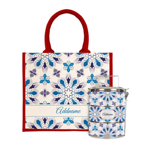 Moroccan Series - Arabesque Frost Half Lining Jute Bag with Tiffin Carrier
