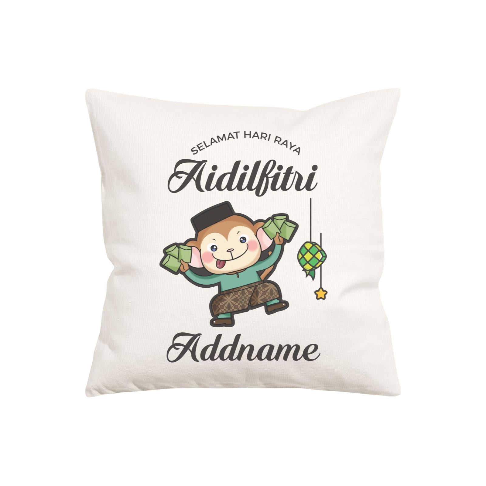 Raya Cute Animals Brother Monkey Wishes Selamat Hari Raya Aidilfitri PW Cushion Cover with Inner Cushion is made with canvas and comes with a hidden zipper on the side. It measures 40cm X 40cm and personalised with a name. A perfect complement to a home or an office chair.