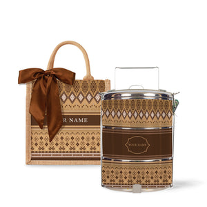 Takeaway in style with your own tiffin/mangkuk tingkat, personalised with your name/initial/brand.
