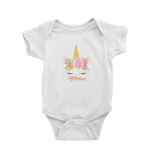 Sweet Rose Garland Unicorn Face Addname Baby Romper