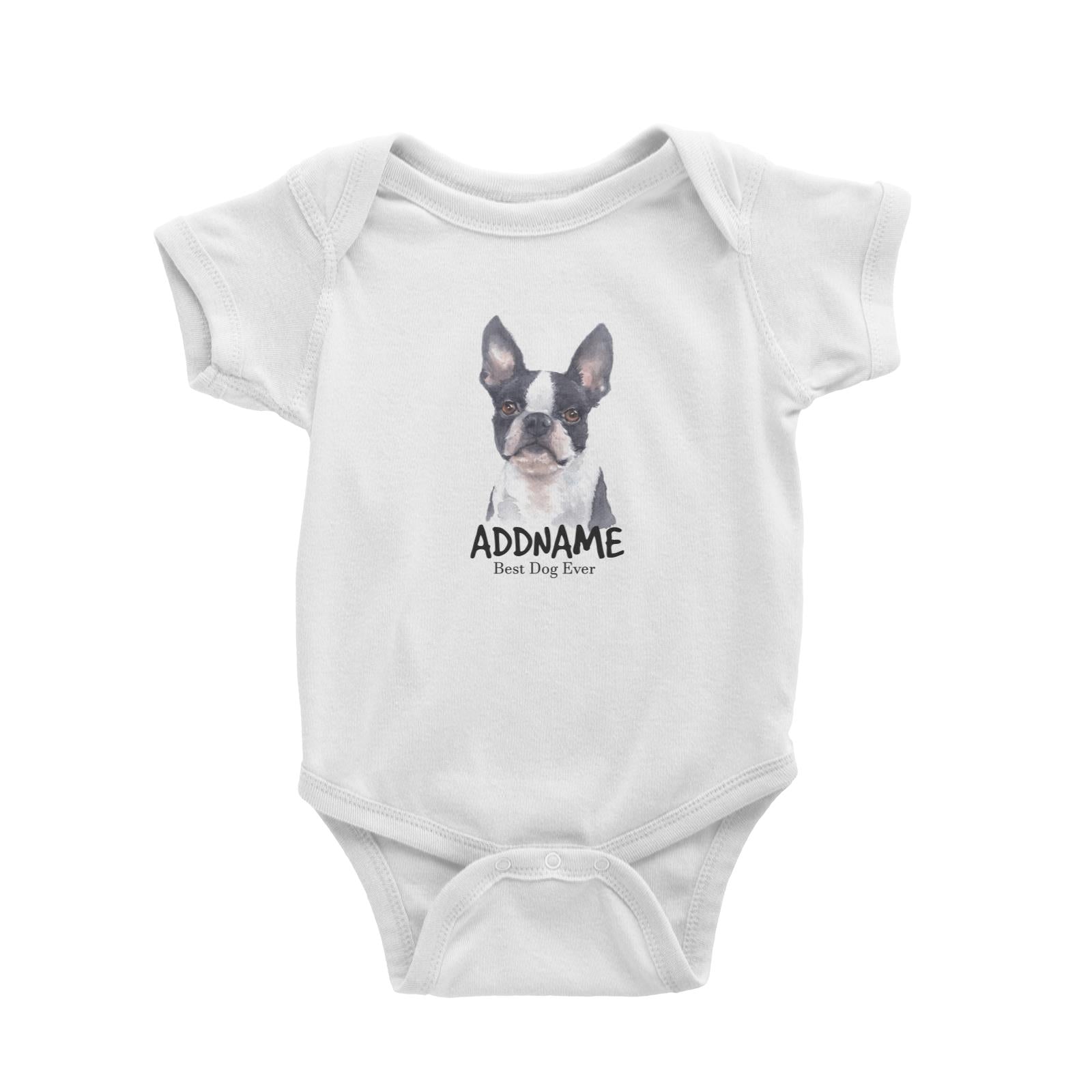 Watercolor Dog Boston Terrier Front Best Dog Ever Addname Baby Romper