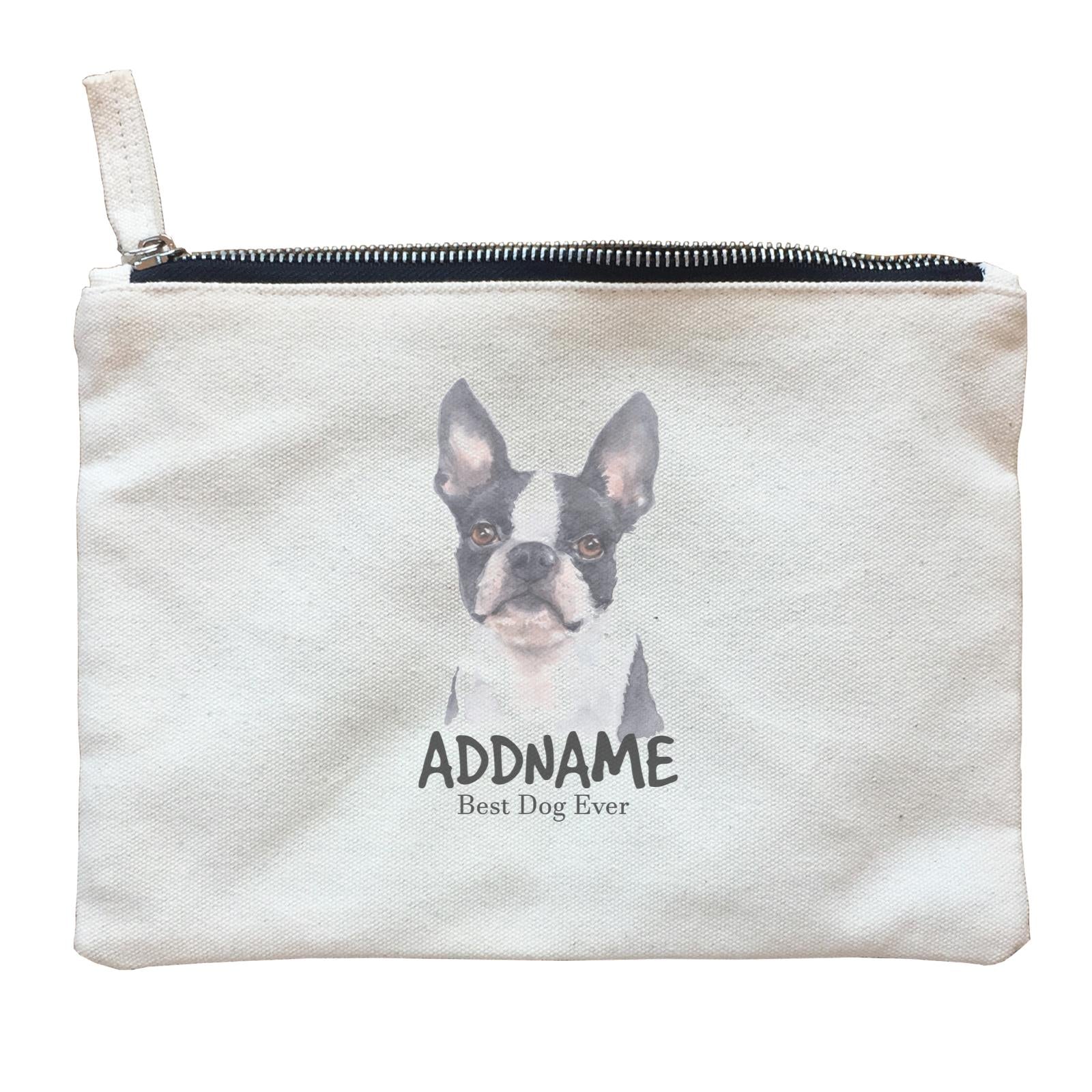 Watercolor Dog Boston Terrier Front Best Dog Ever Addname Zipper Pouch