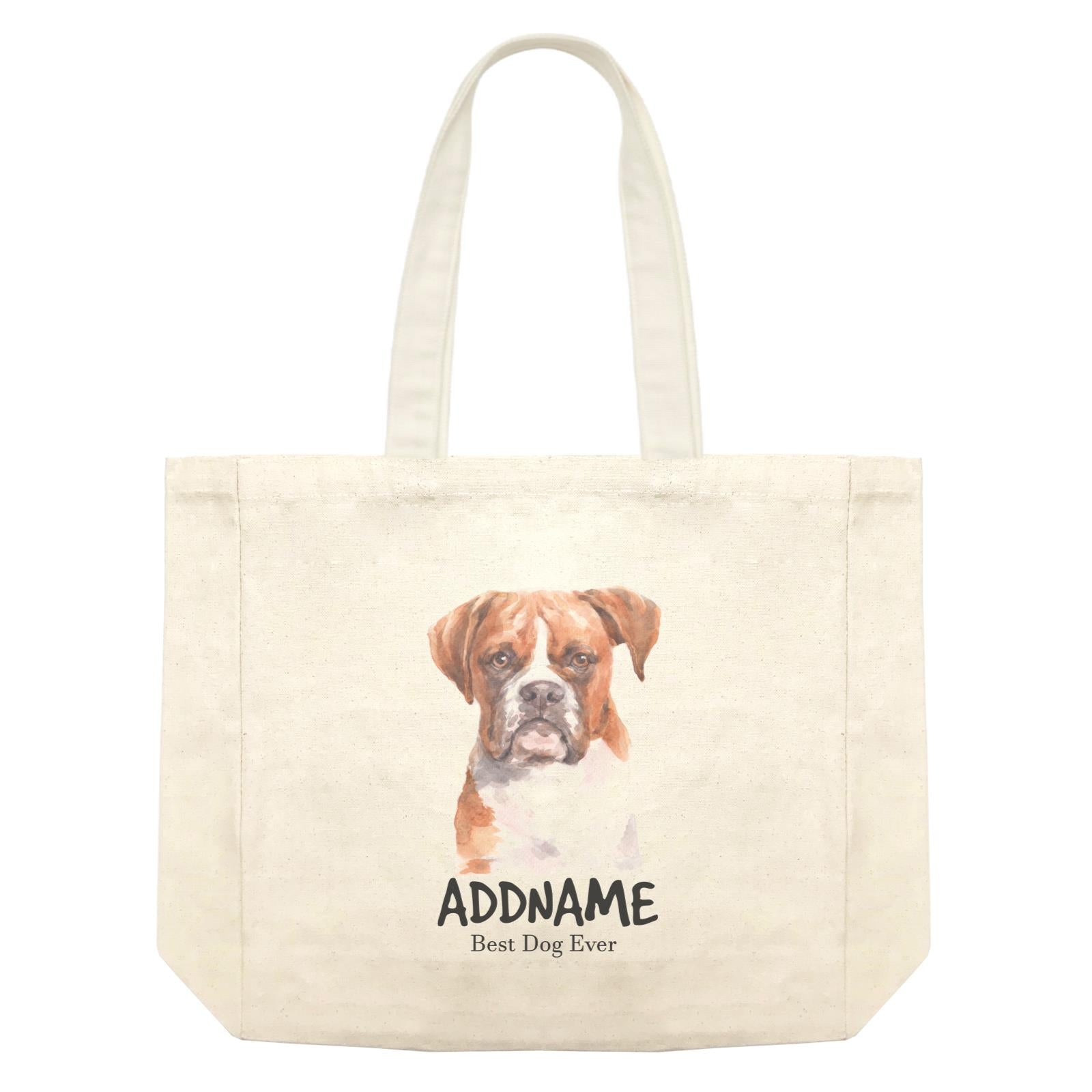 Watercolor Dog Boxer Brown Ears Best Dog Ever Addname Shopping Bag