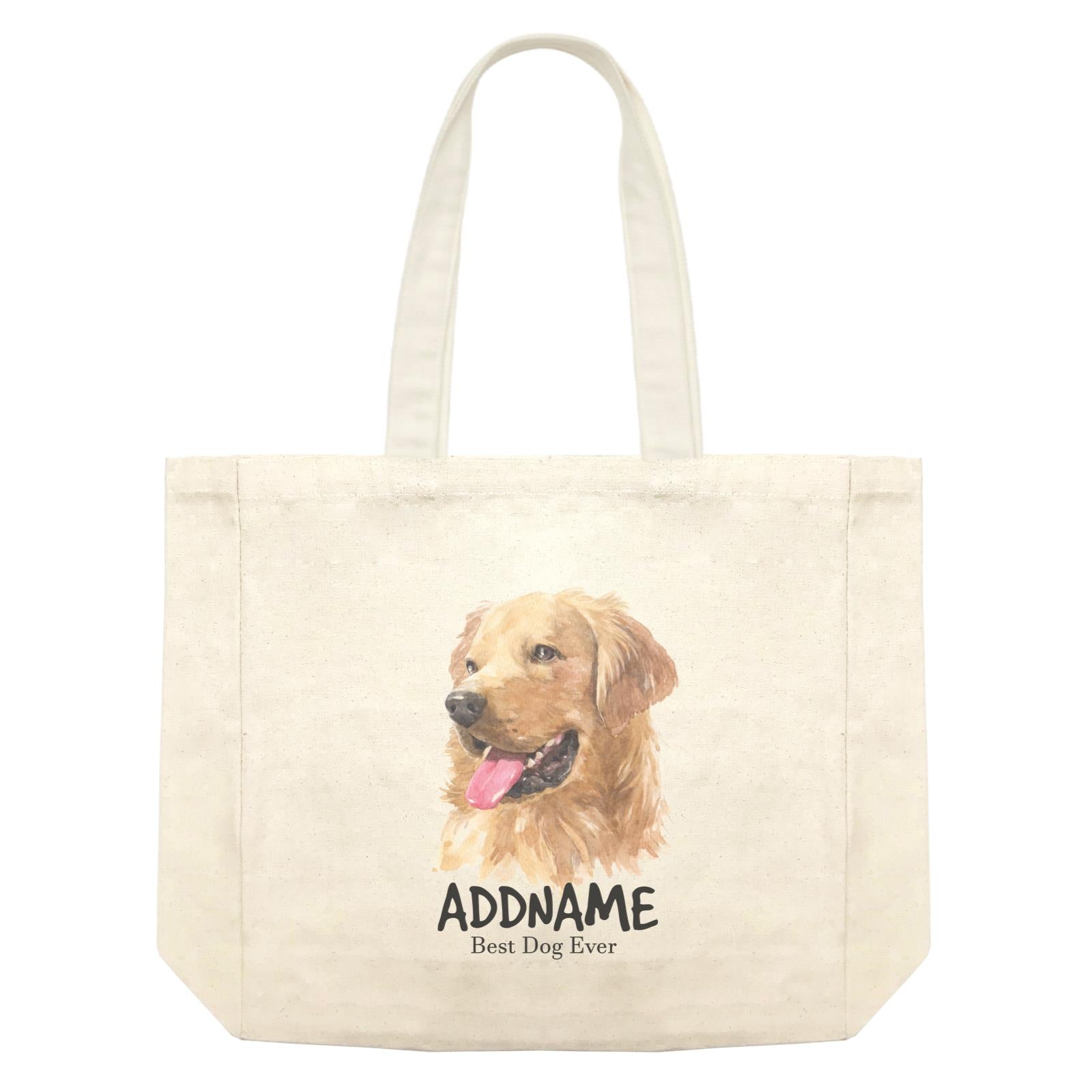 Watercolor Dog Golden Retriever Left Best Dog Ever Addname Shopping Bag
