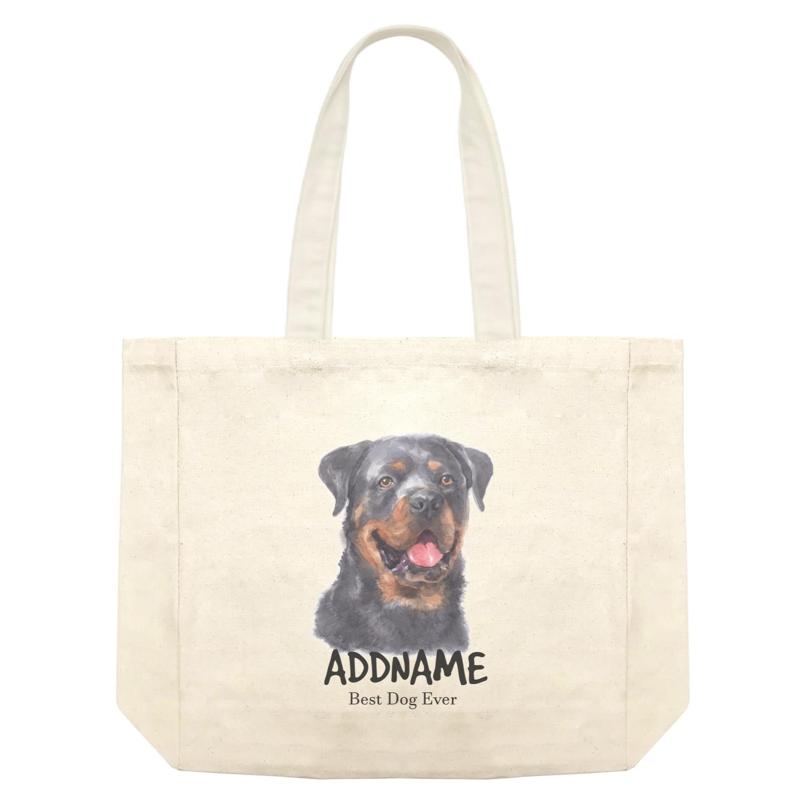 Watercolor Dog Rottweiler Smile Best Dog Ever Addname Shopping Bag