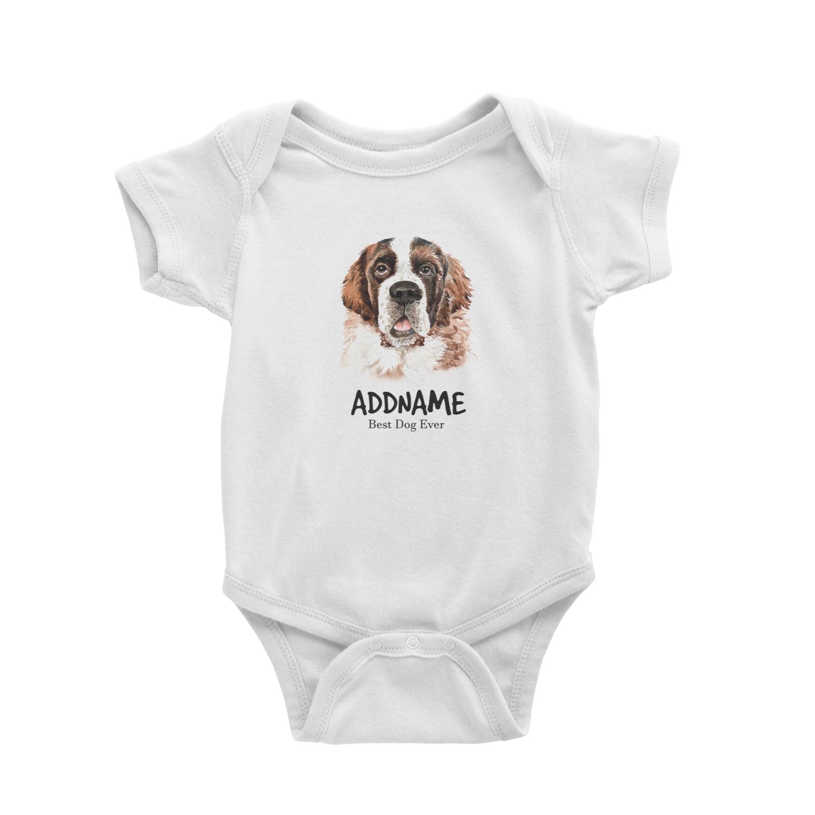 Watercolor Dog Saint Bernard Front Best Dog Ever Addname Baby Romper