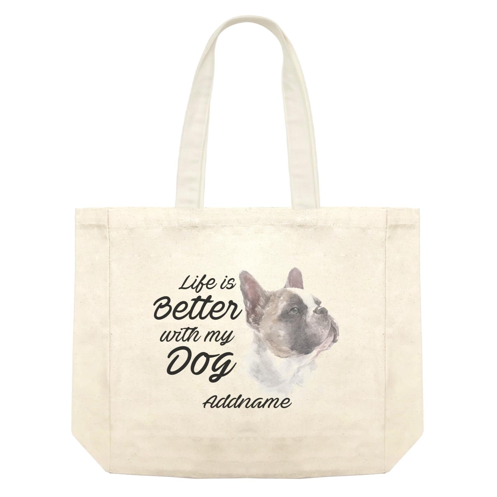 Watercolor Life is Better With My Dog French BulldogAddname Shopping Bag